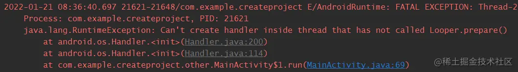我们可以看到:当我们在子线程中没有调用Looper.prepare(),那么此时在子线程中通过