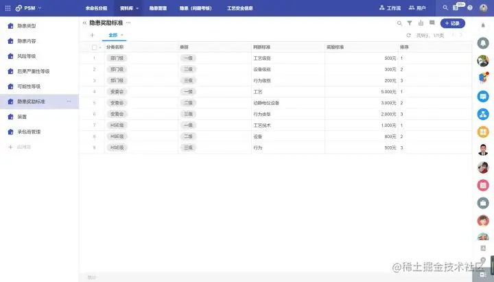 隐患管理系统需要有明确的类型管理、后果严重性等级及风险等级,也需要一定的奖励标准。