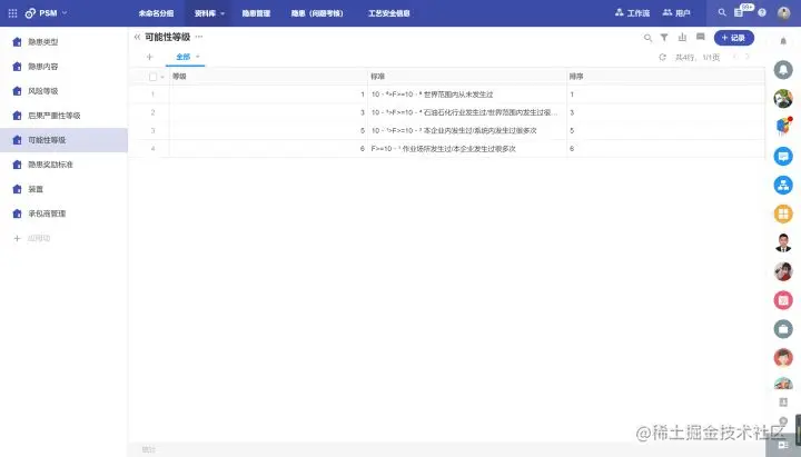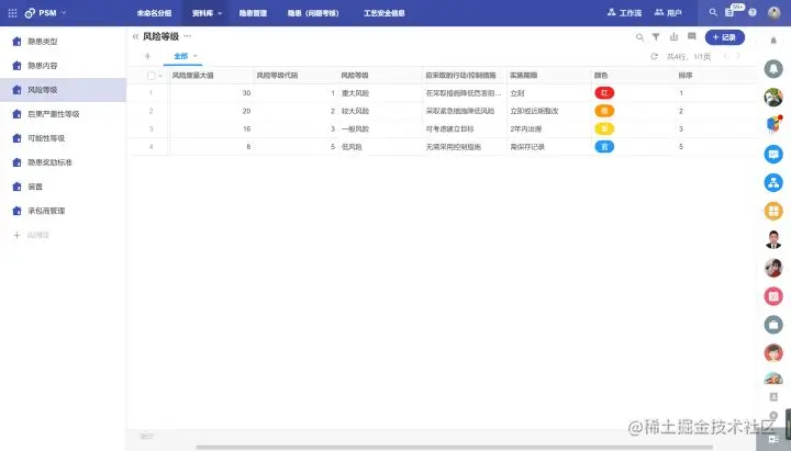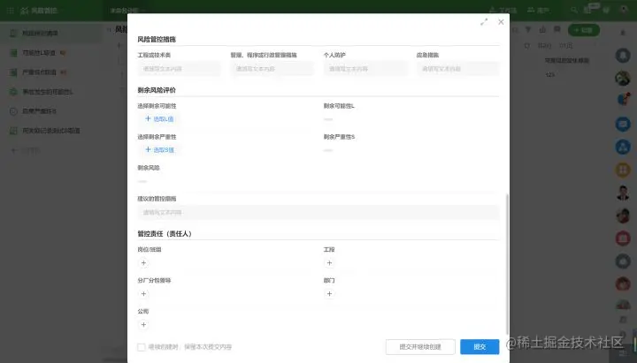 员工可以通过提交风险辨识清单,管控项目工程中的风险内容。通过这部分风险内容,结合关联的可能性L和严重性S,给到风险进行分数评估。而后,系统会自动评判剩余风险。系统根据不同取值得分,将风险分发至不同的流程分支,再交由相关人员进行管理。