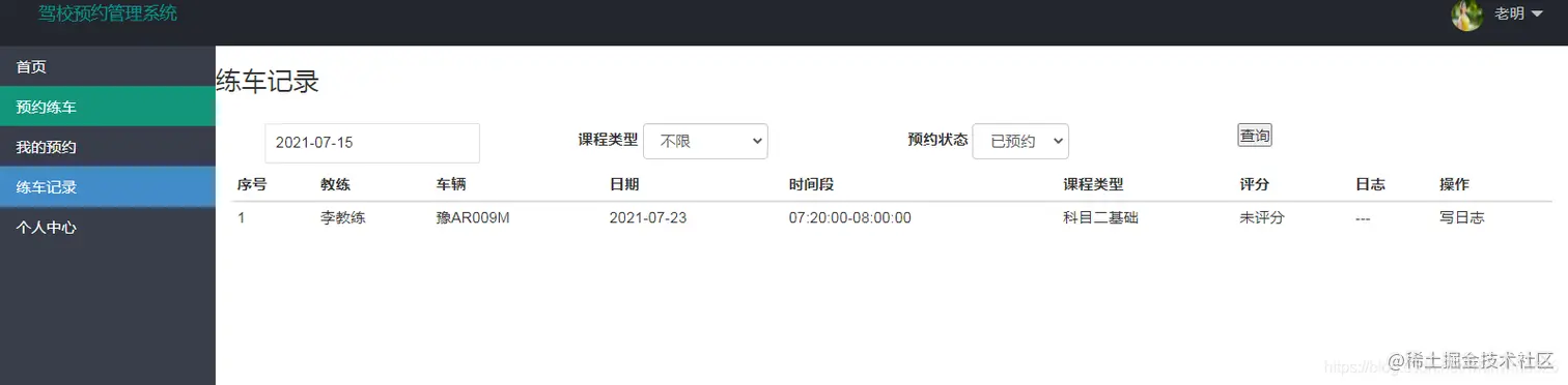 查看练车记录
