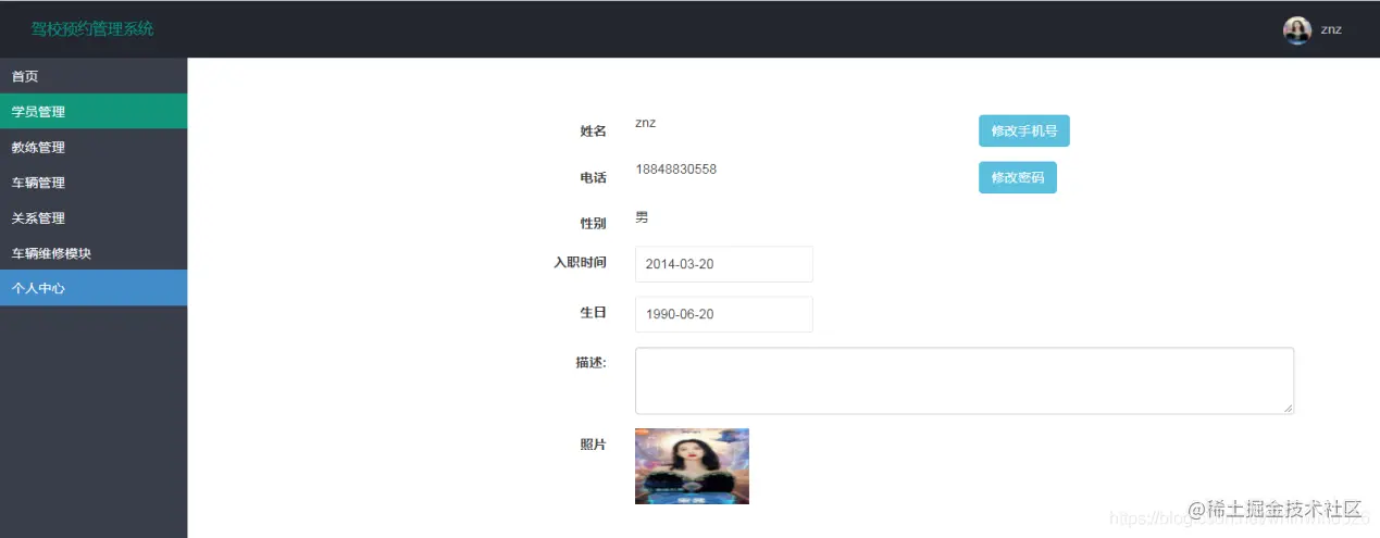 主要完成对学员信息的添加,查询,修改操作,点详情进入修改页面