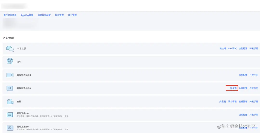 1、登录云信控制台创建应用并申请开通音视频 2.0 及「安全通」相关服务。详细操作步骤可参考:
