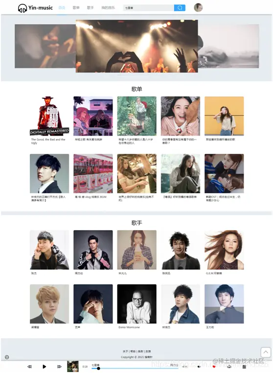 - 歌单列表、歌手列表分页显示