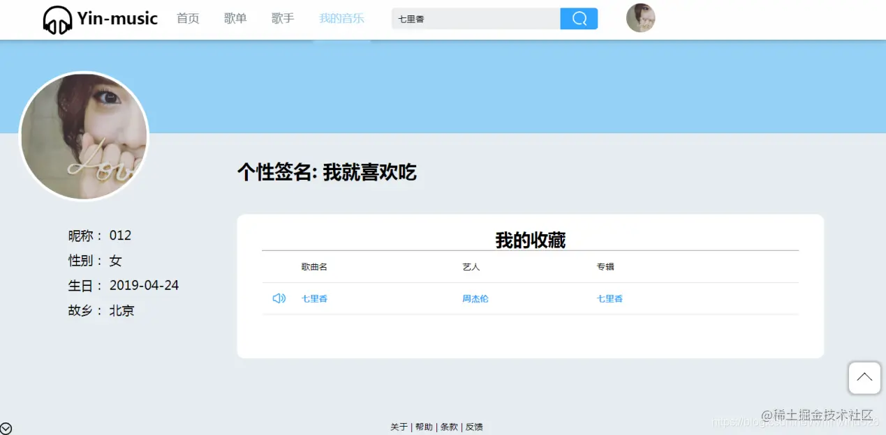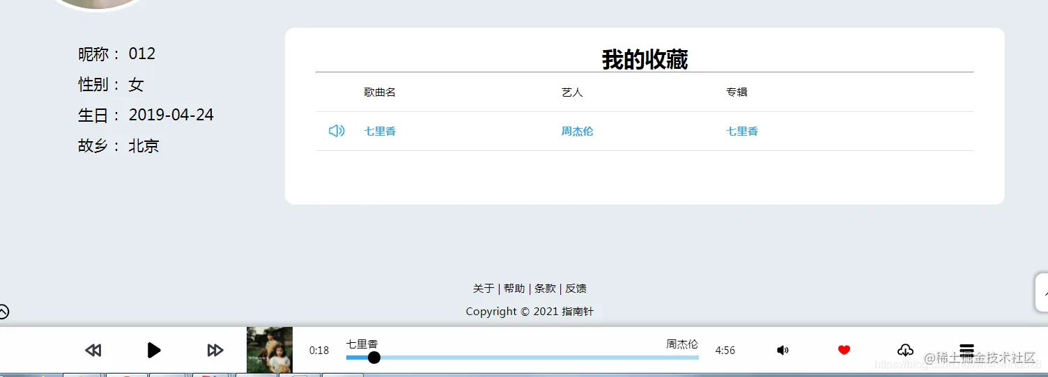 我的音乐 ****主要展示当前用户收藏的音乐