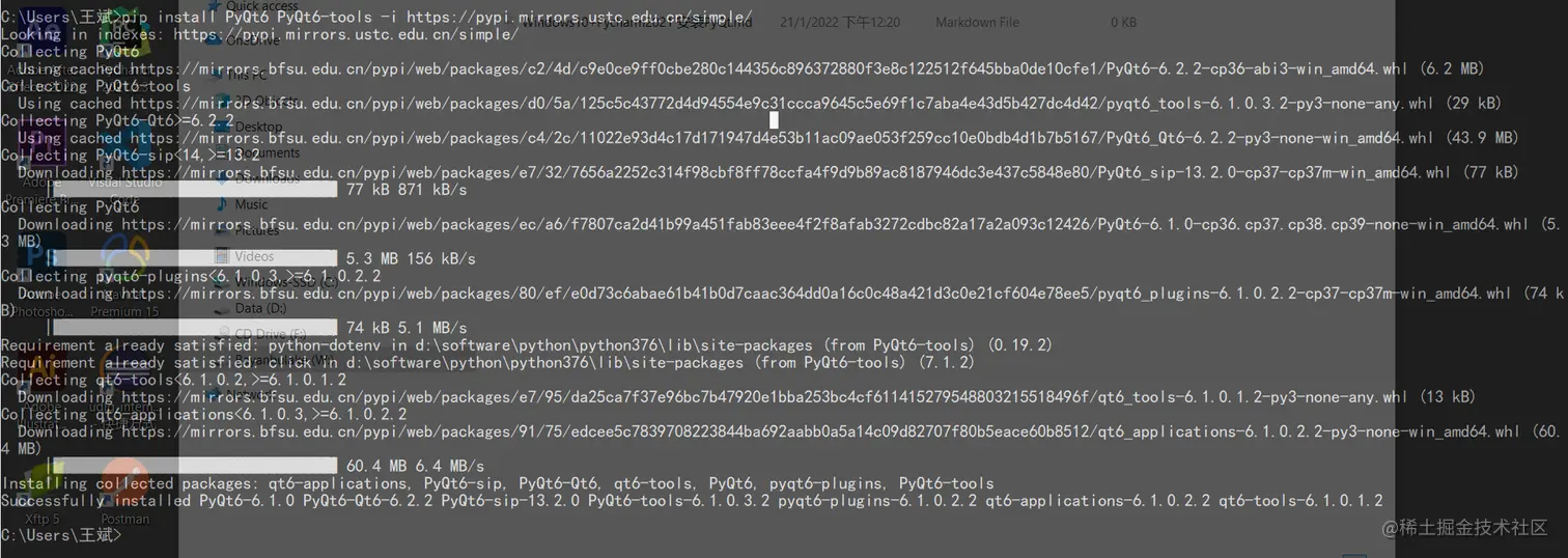 我安装的是python3.10.1,无论我怎么费尽心思去排查问题都无法正确安装PyQt5和PyQt5-tools,总之就是报依赖冲突或者版本不匹配的错误。试了5~6次,我觉得是不是我的Python版本是不是太新了,就尝试安装了Python3.7.6,再把之前安装的其它依赖包一大堆依赖包挪到3.7.6下面之后,我就卸载了Python3.10.1。
