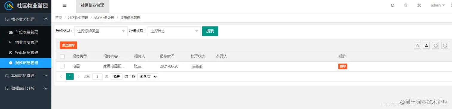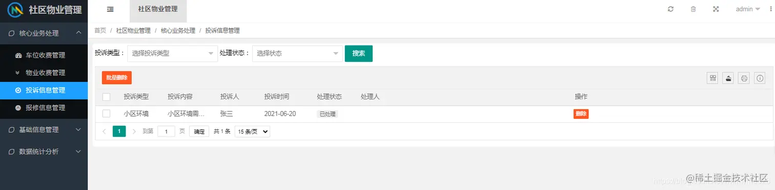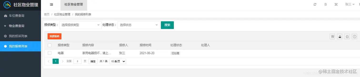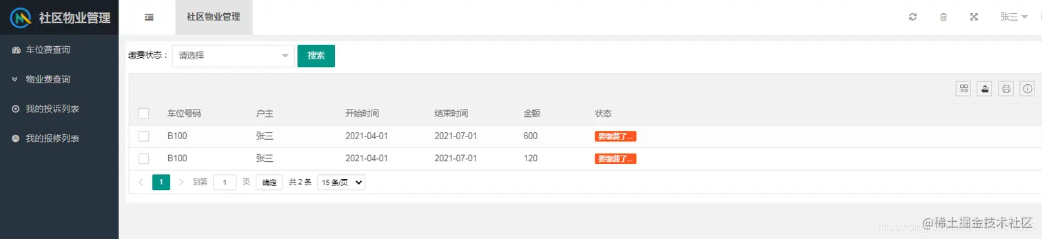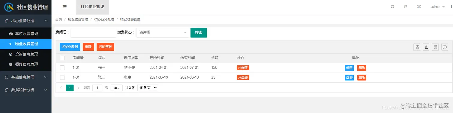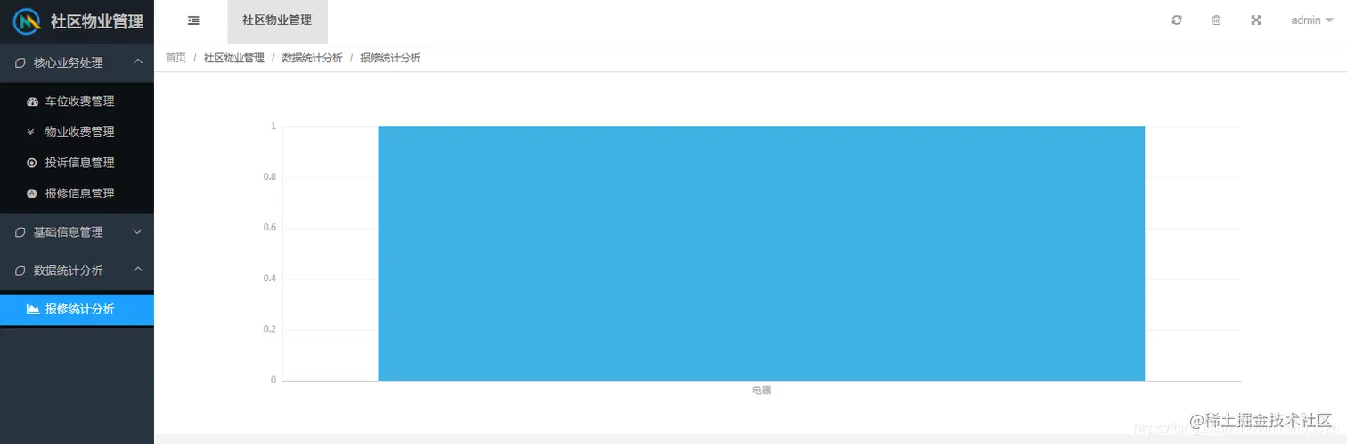 本项目基于Springboot实现小区物业管理系统,主要涉及小区物业的基础信息管理,比如楼宇管理、房间管理、业主管理、车位管理、收费管理,另外像针对业主的投诉管理、维修管理、抄表管理,并提供了相应图形报表统计信息进行统计操作。系统另外提供了业主登陆的角色,可以查看自己的应缴费用、投诉信息、维修上报等等。