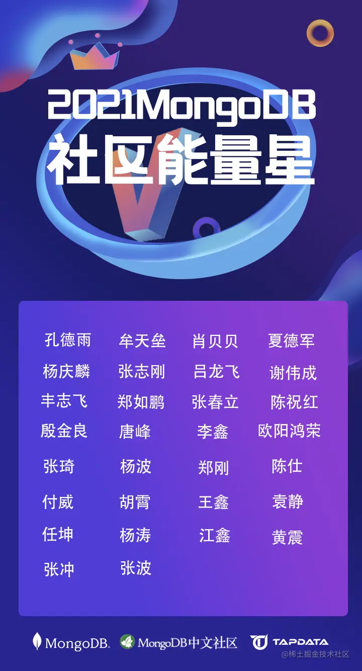 本次,我们评选出了2021年MongoDB中文社区年度贡献之星: