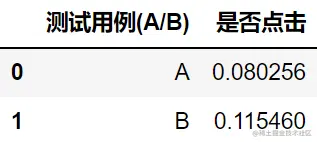 数据处理好后,接下来统计一下 A/B 两个广告的点击率。