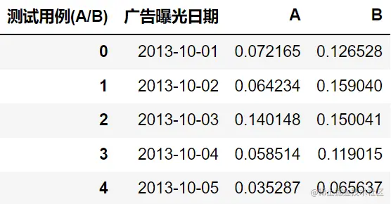 在测试过程中,我们收集到了两组广告的曝光数据和点击数据,接下来就可以开始数据分析!