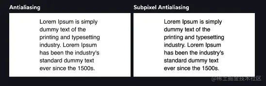 在过去(2012年),Mac操作系统上面的浏览器会默认使用“subpixel antialiasing”这个亚像素抗锯齿的属性,Mac操作系统看到这个属性后,通过调整RGB像素灯光来让文字阅读起来更加舒服,来提升用户体验,相关文章。