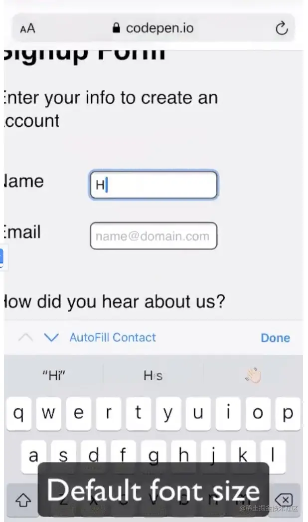 然而13px过于小了,如果放在手机上,浏览器会自动放大来定位到输入框,体验很不好,如图: