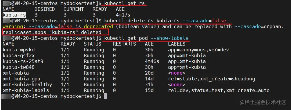 删除 rs 的时候和删除 rc 的做法是一样的,默认的话都是会删除掉 rs 管理的 pod ,如果我们不需要删除对应的 pod ,那么我们也可以加入 --cascade=false 或者 –cascade=orphan