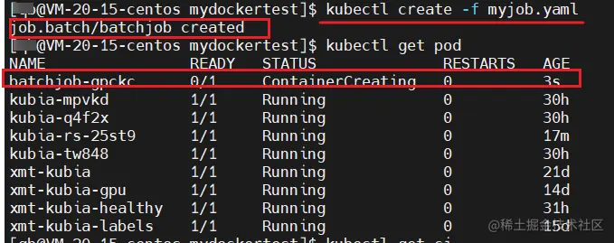 可以看到 Job 资源已经部署成功了,且 pod 已经是在创建中了