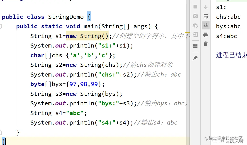 System.out.println("bys:"+s3);//输出bys:abc,他会 转化成对应的Ascll码值