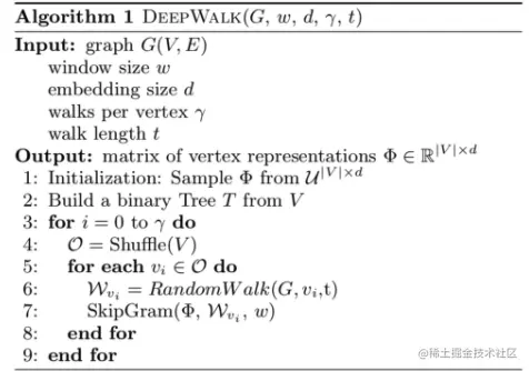Random Walk:基于随机游走的图嵌入通过使得图上一个短距的随机游走中共现的节点具有更相似的表示的方式来优化节点的嵌入。