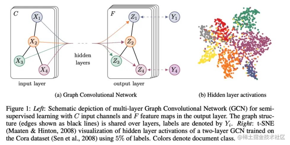 首先,我来看下GCN的整体网络结构,以下图片摘自论文SEMI-SUPERVISED CLASSIFICATION WITH GRAPH CONVOLUTIONAL NETWORKS: