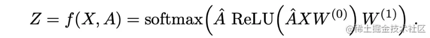 假设我们构造一个两层的GCN,激活函数分别采用ReLU和Softmax,则整体的正向传播的公式为: