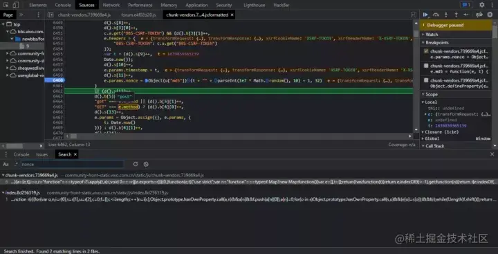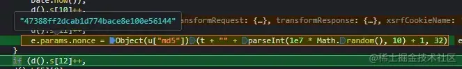 通过全局搜过,断点定位,最终将目标锁定在这一行代码上。