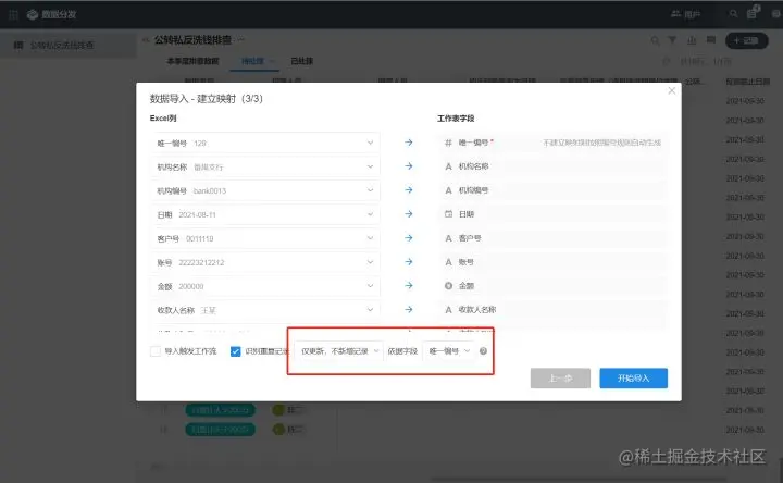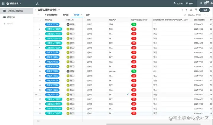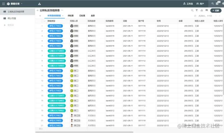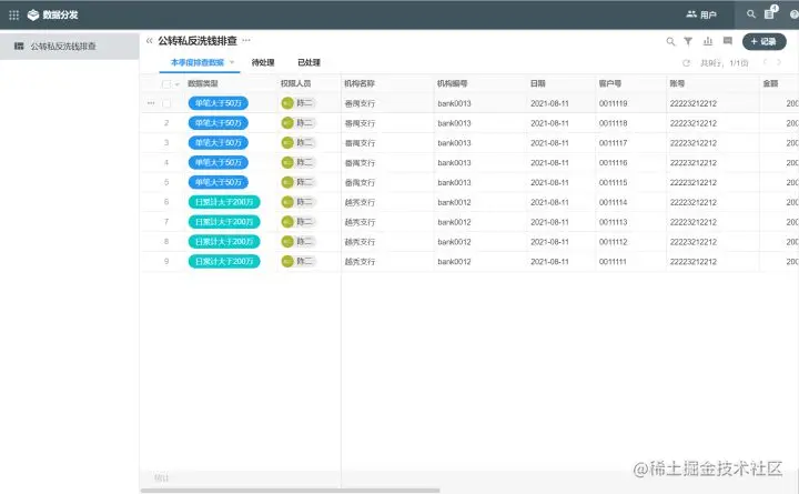 本篇文章以公转私反洗钱排查的数据分发需求在明道云落地为例,快速梳理需求并对其在明道云上的搭建与使用进行介绍。