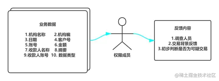 银行的业务部门(经营部、金融部)在每个月或每个季度都需要对一系列业务数据进行调查反馈,这一系列的数据就包括了公转私反洗钱的排查、个贷原始、企贷原始等敏感数据。作为业务的负责人,他们需要到银行的内部系统去导出相关的业务数据,再将数据针对性地分发到对应的处理人或处理部门手上,数据处理后再逐一回收做统一分析。