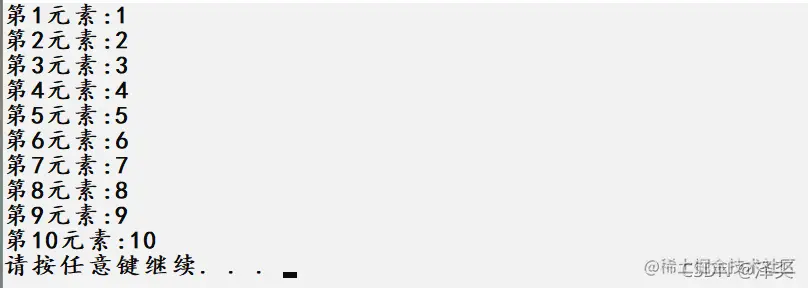 printf("第%d元素:%d\n", i + 1,arr[i]);