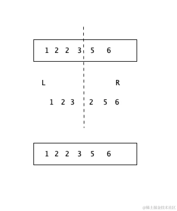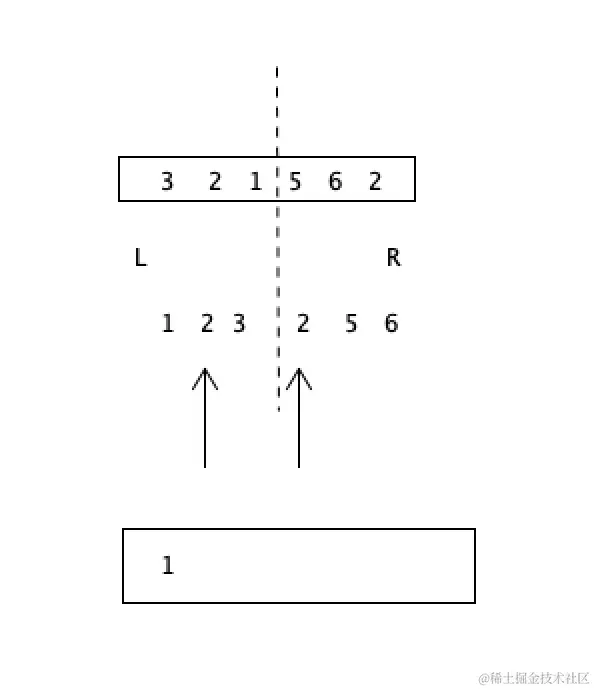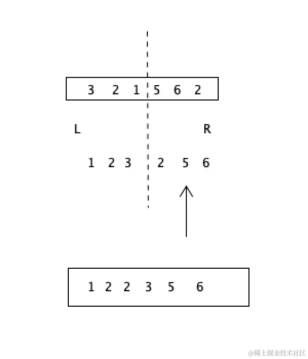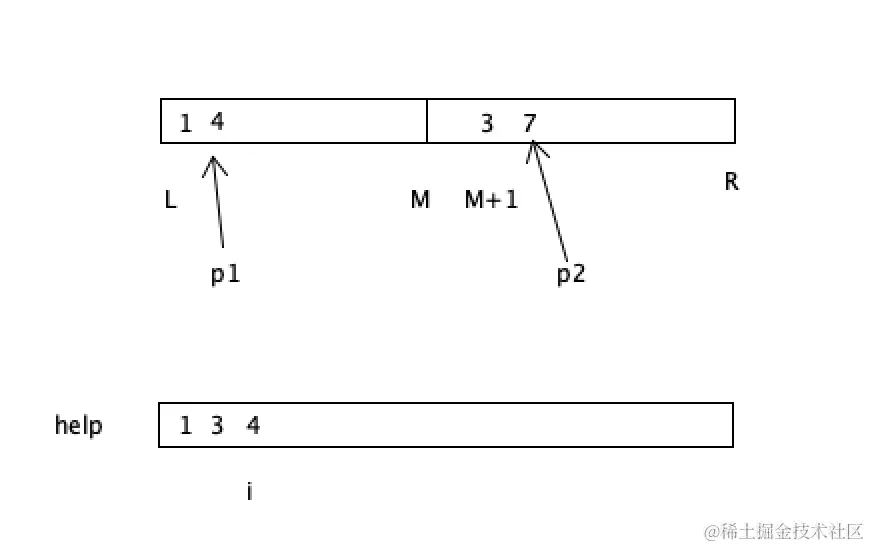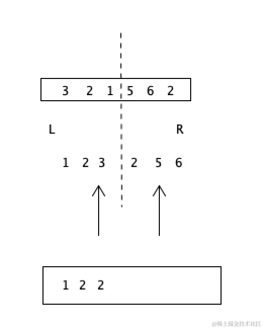 归并排序是左侧的指针和右侧的指针