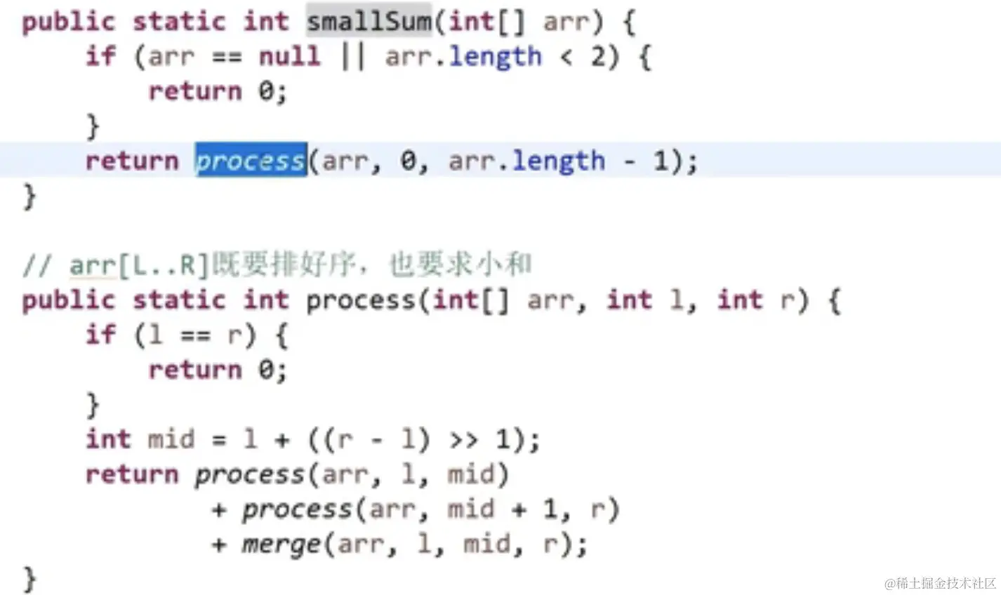 整个数组的小和是所有小和累加起来