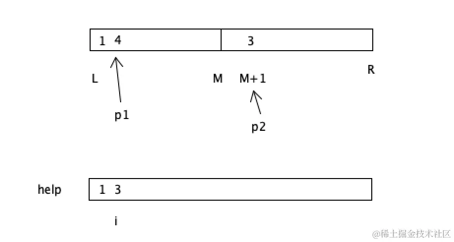 变量p2是右侧部分的下标指向M+1位置