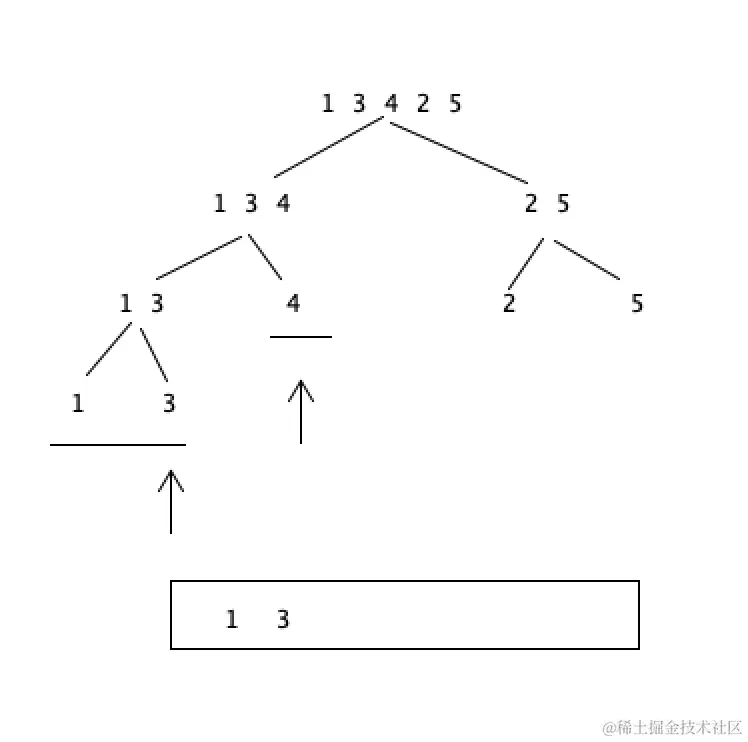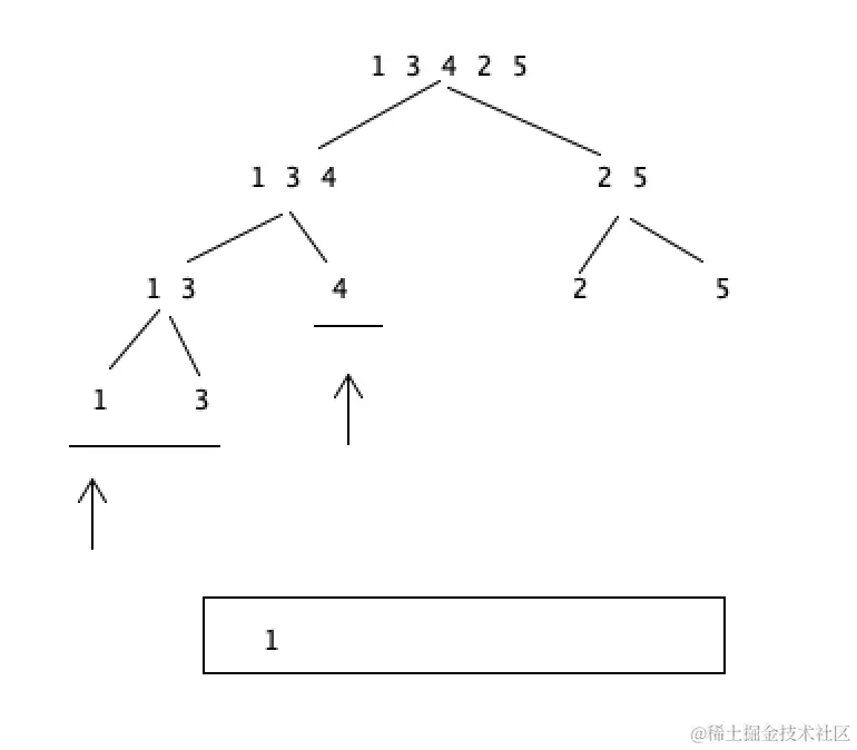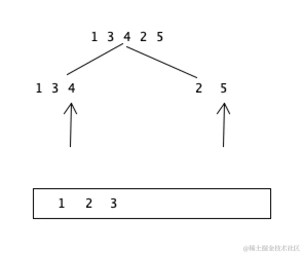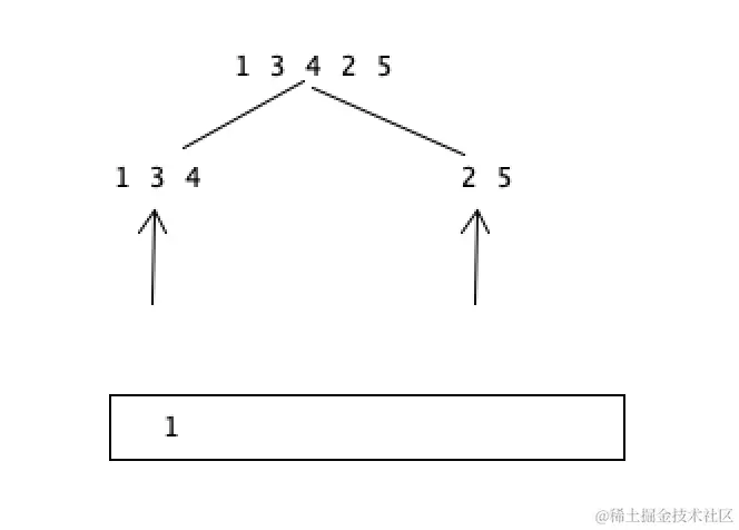 对于[1,3,4,2,5]来说 1,3,4是左侧,2,5是右侧