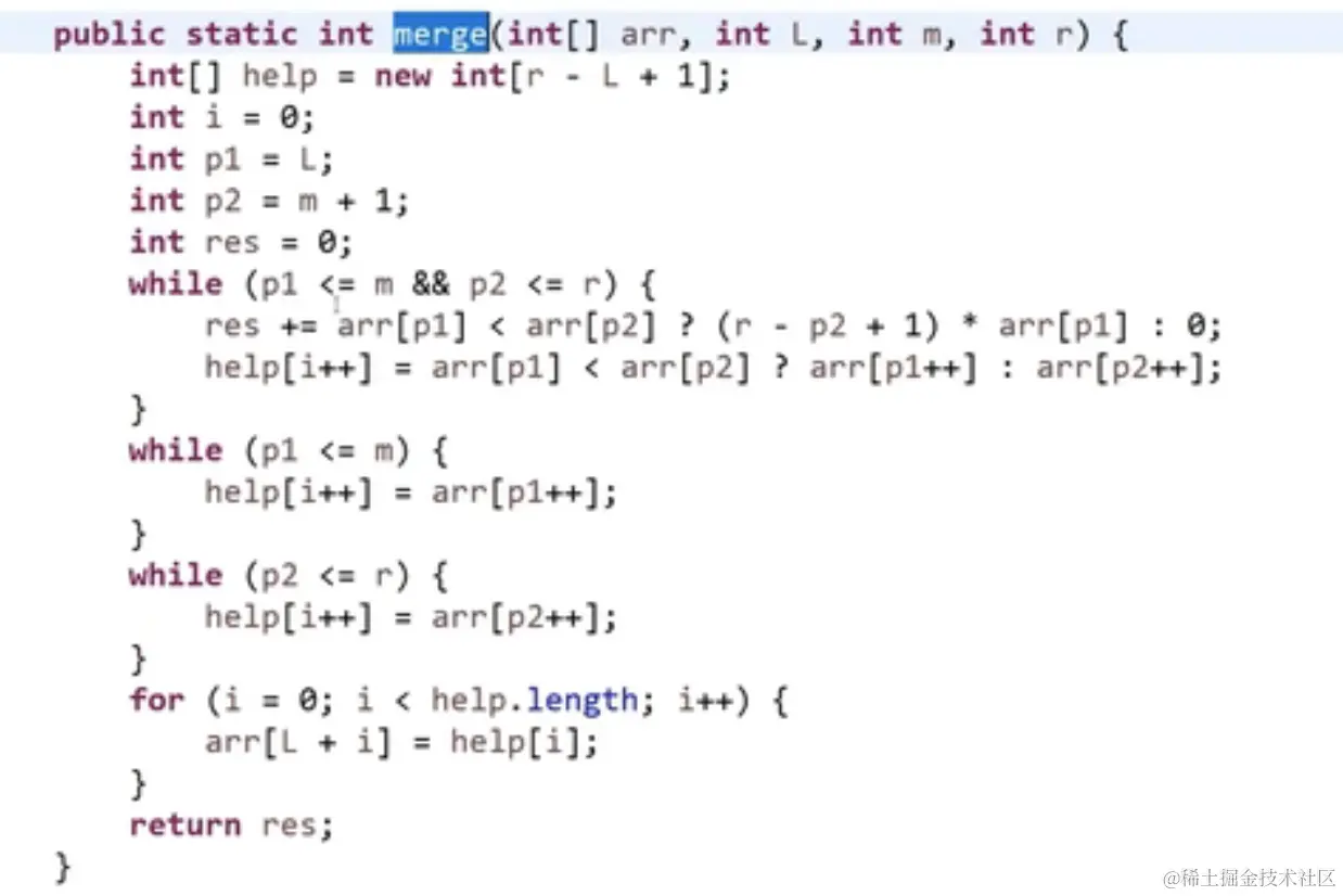 比如拷贝右侧 右侧指标p2往右移动 r-p2+1 就是右侧比左侧当前指针所指向的数大的个数