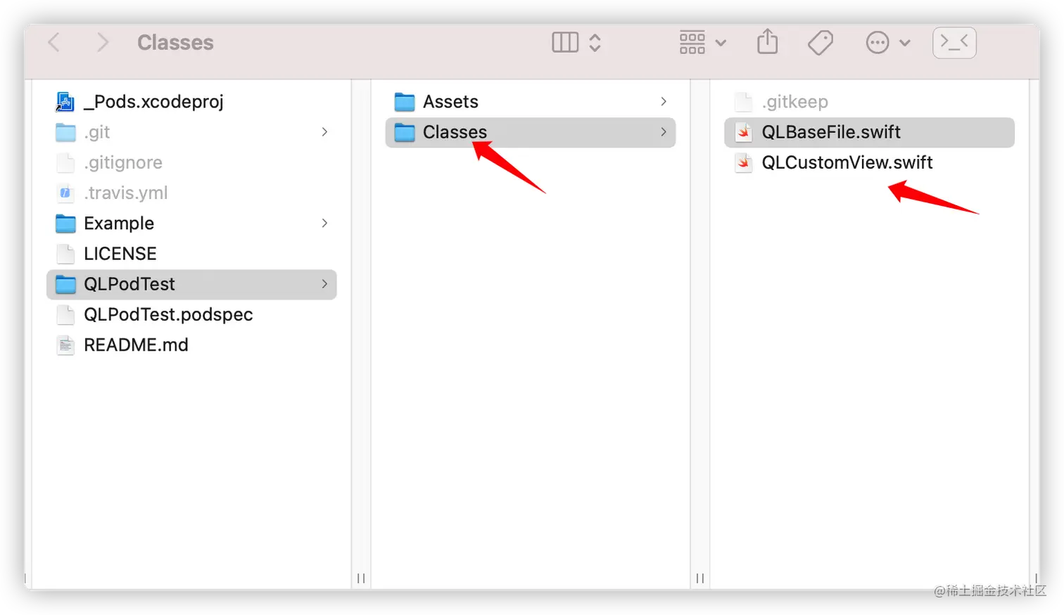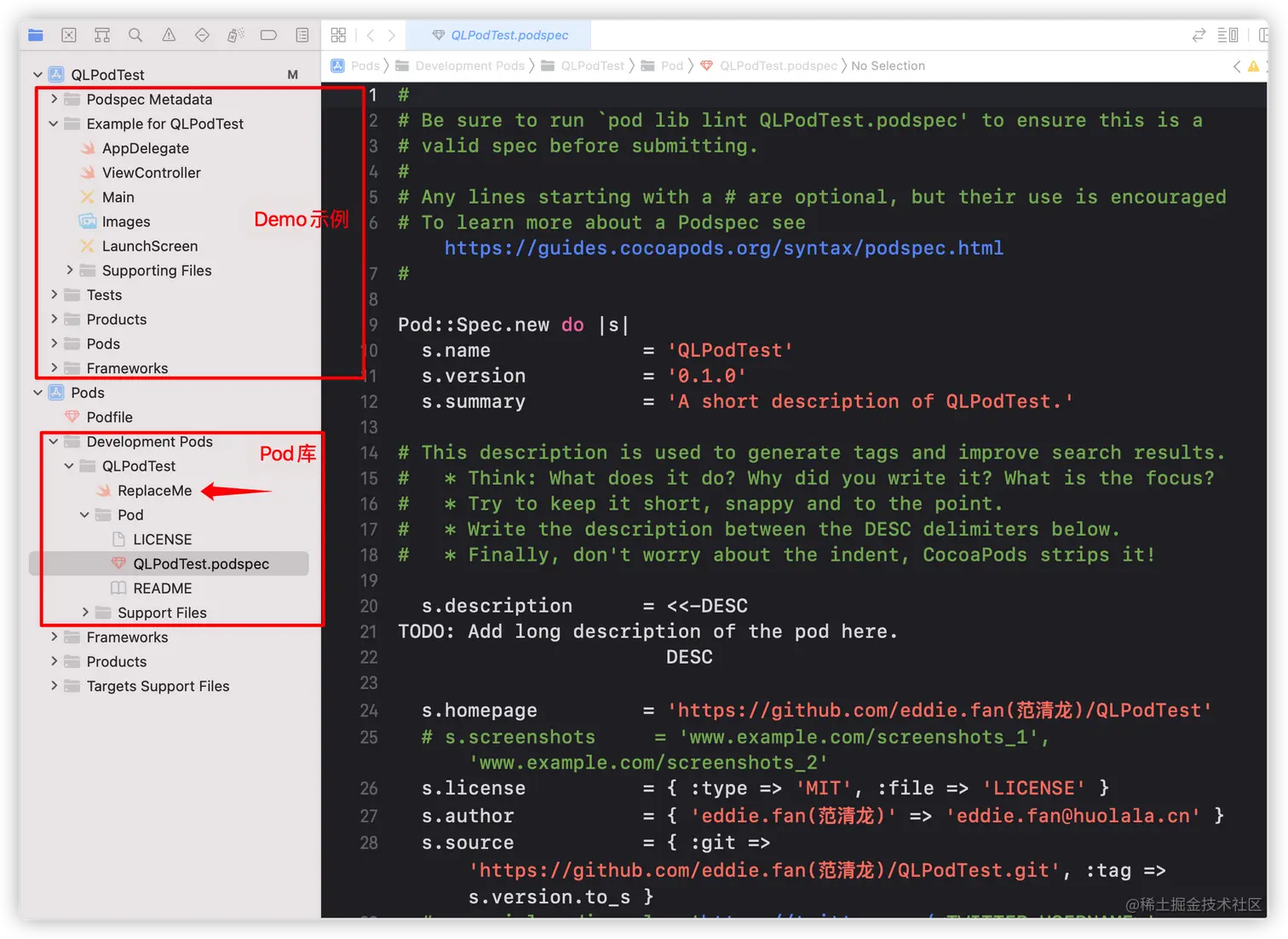 功能开发完了,可以在上面的Example for QLPodTest 工程里测试. Import QLPodTest 后,就可以使用Pod库里的东西了。 外部要访问的类文件,要标记为open或者public 才可以