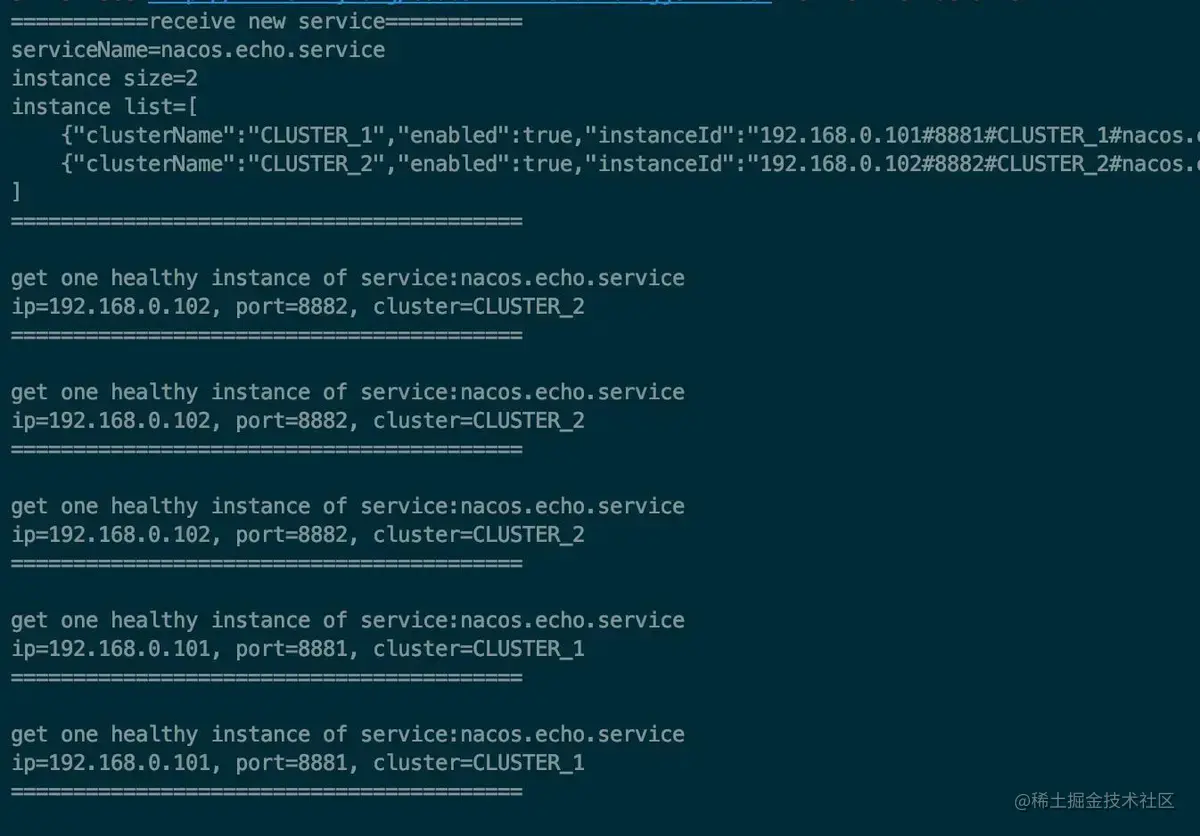 可以发现naming客户端成功获取到了两个实例。