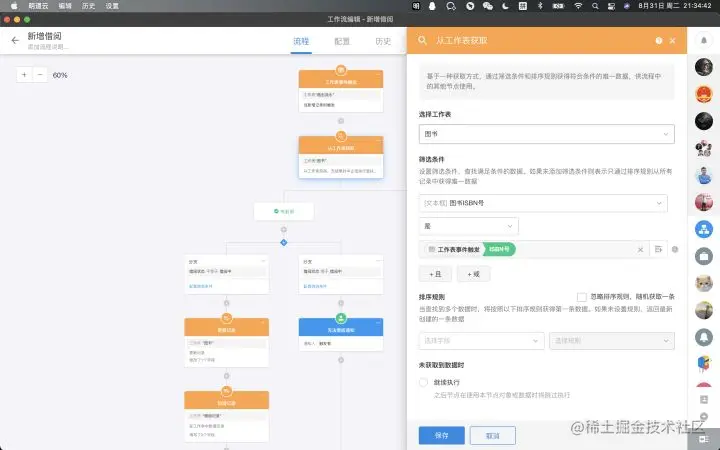 - 添加获取单条数据节点,前往【图书】获取ISBN号与触发记录一致的数据,再添加数据查询分支节点。