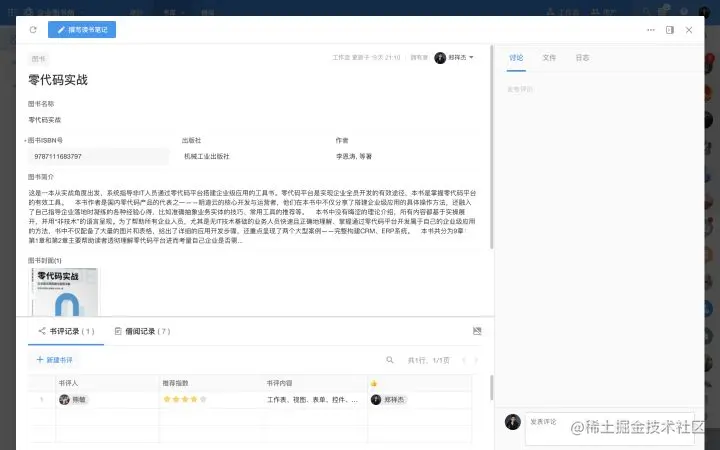 回归图书管理应用本身,除了本文所呈现的功能,你是否还想到更多的企业图书管理的需求点?不如现在就搭建起来!