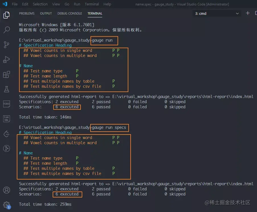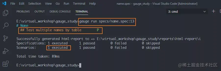 - gauge提供了很多方法,包括:批量运行所有的spec文件,运行特定的spec文件,运行特定的spec文件下特定的scenario