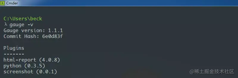 安装比较简单,一路点击下一步,最后将gauge.exe所在路径配置环境变量。在cmder中输入gauge -v,有输出版本信息时,说明已经安装成功