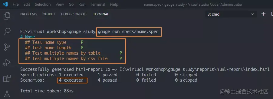 如果只想运行name.spec下的4条用例,需要加上指定的spec文件名