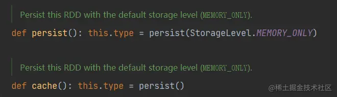 cache()=persist()=persist(StorageLevel.MEMORY_ONLY)