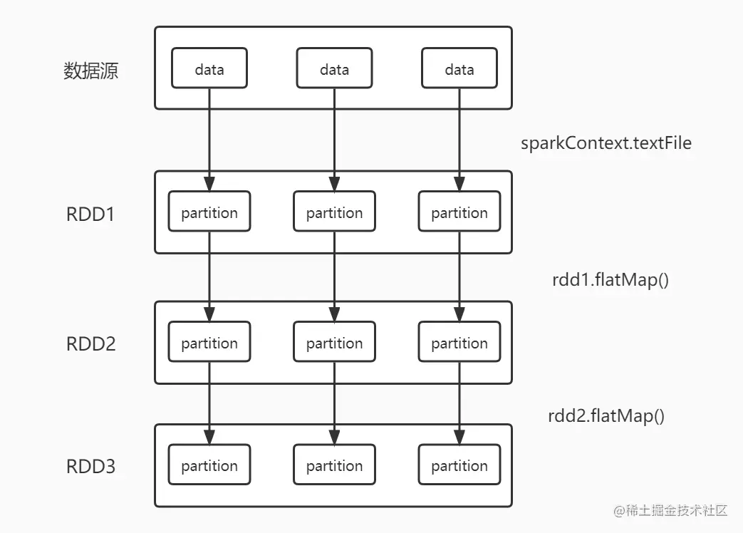 算子从功能上可以分为Transformations转换算子和Action行动算子。转换算子用来做数据的转换操作,比如map、flatMap、reduceByKey等都是转换算子,这类算子通过懒加载执行。行动算子的作用是触发执行,比如foreach、collect、count等都是行动算子,只有程序运行到行动算子时,转换算子才会去执行。
