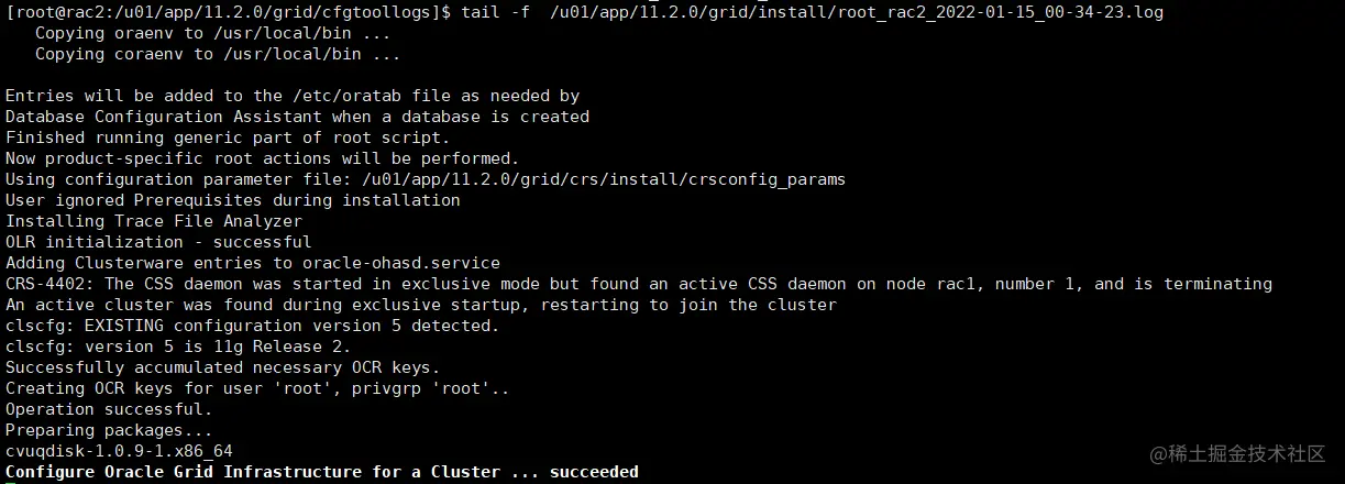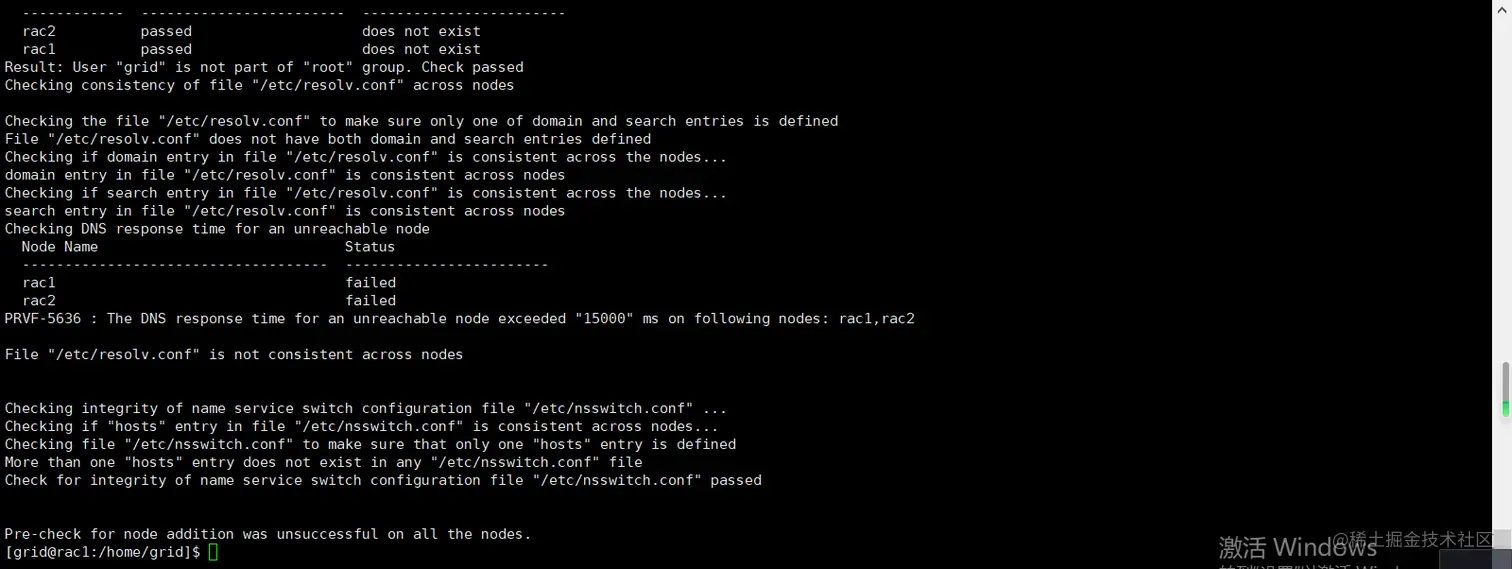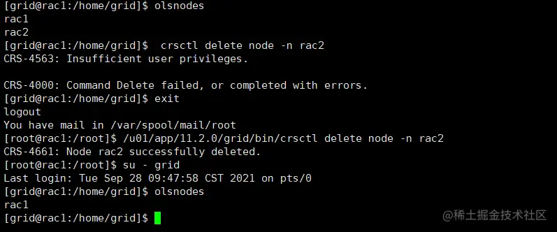 ✒️要检查上述步骤是否成功,在尚存执行即可 olsnodes ,重装的主机不应该出现在它列出的清单里。