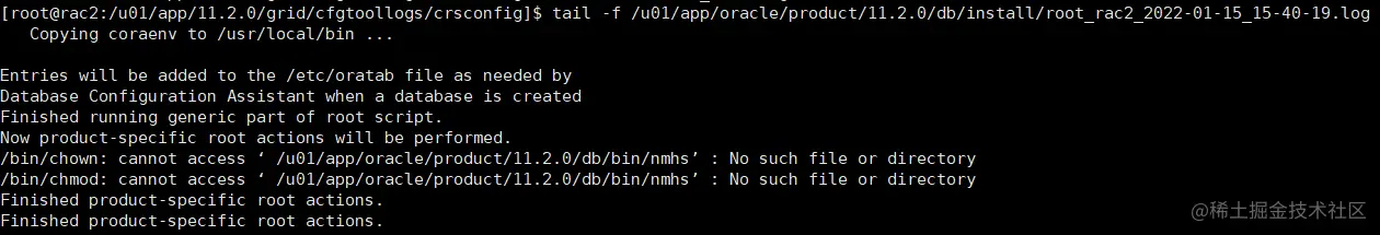 📛rhel7上的11g版本,这里提示的nmhs文件不存在,可以手工从1号节点拷贝,然后修改权限