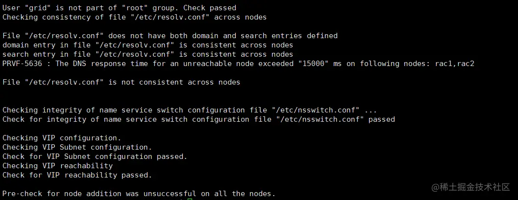 👑这里如果不忽略之前的校验失败选项,直接添加节点将产生报错,这和我们安装rac时的校验一样 👑