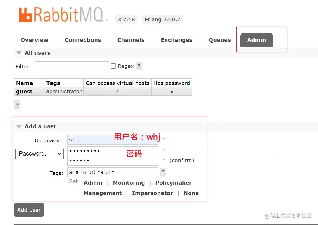 上面的Tags选项,其实是指定用户的角色,可选的有以下几个: