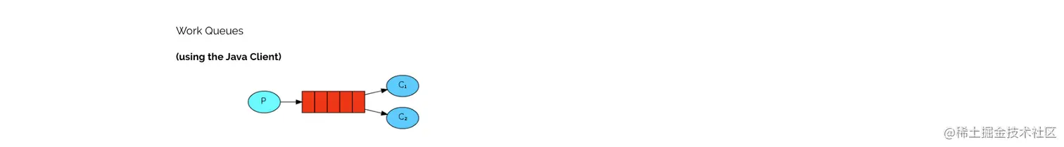 Work queues,也被称为(Task queues),任务模型。当消息处理比较耗时的时候,可能生产消息的速度会远远大于消息的消费速度。长此以往,消息就会堆积越来越多,无法及时处理。此时就可以使用work 模型:让多个消费者绑定到一个队列,共同消费队列中的消息。队列中的消息一旦消费,就会消失,因此任务是不会被重复执行的。