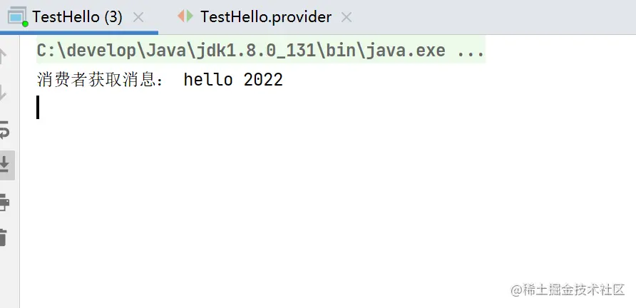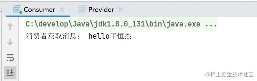 /** * @author 王恒杰 * @date 2022/1/22 15:48 * @Description: 生产者 */public class Provider { public static void main(String[] args) throws IOException { //获取链接 Connection connection = RabbitMQUtil.getConnection(); //创建通道 Channel channel = connection.createChannel(); //设置队列 channel.queueDeclare("Hello_Util", true, false, true, null); //产生发送数据 Publish出版 channel.basicPublish("", "Hello_Util", null, "hello王恒杰".getBytes()); //关闭资源 RabbitMQUtil.close(channel, connection); }}