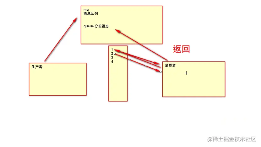 queue:消息队列,图中红色部分。类似一个邮箱,可以缓存消息;生产者向其中投递消息,消费者从其中取出消息。