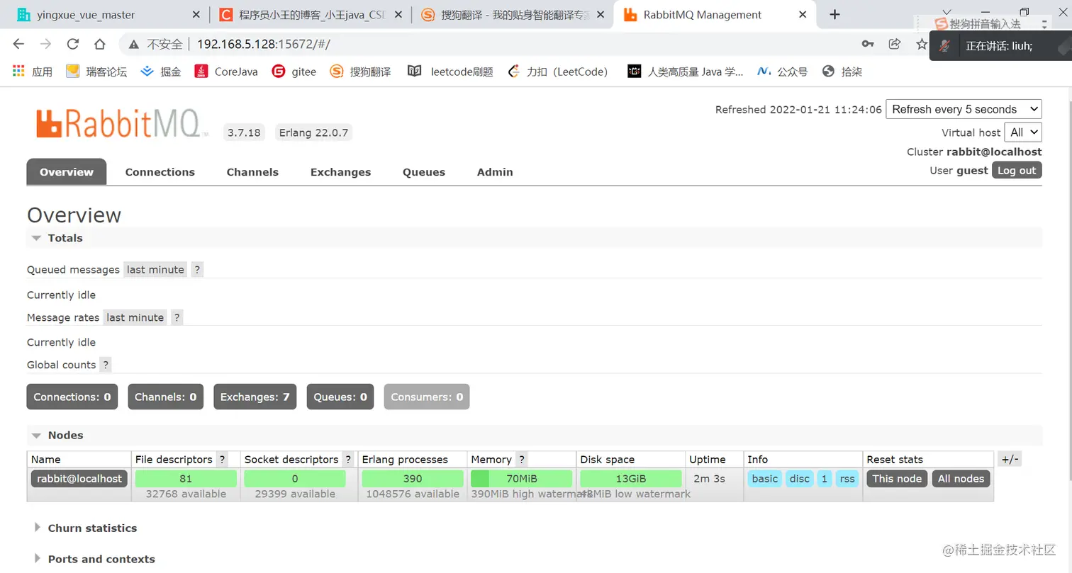 # 11.访问web管理界面( 192.168.5.128是我自己的ip地址)http:// 192.168.5.128:15672/