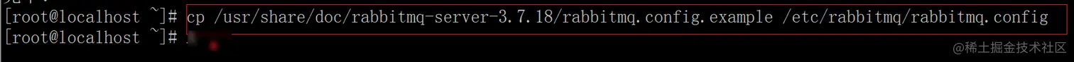 # 4.复制配置文件 cp /usr/share/doc/rabbitmq-server-3.7.18/rabbitmq.config.example /etc/rabbitmq/rabbitmq.config