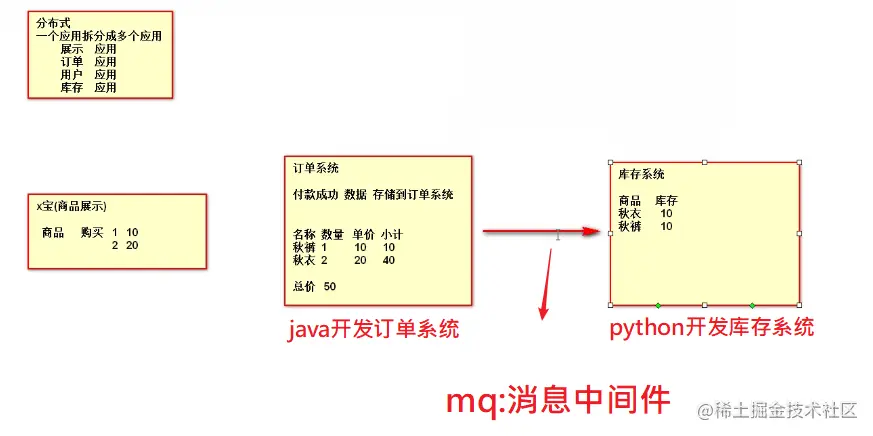 例: 订单系统(生产者),将数量这个数据给消息中间件,库存系统(消费者),消费消息中间件的数据