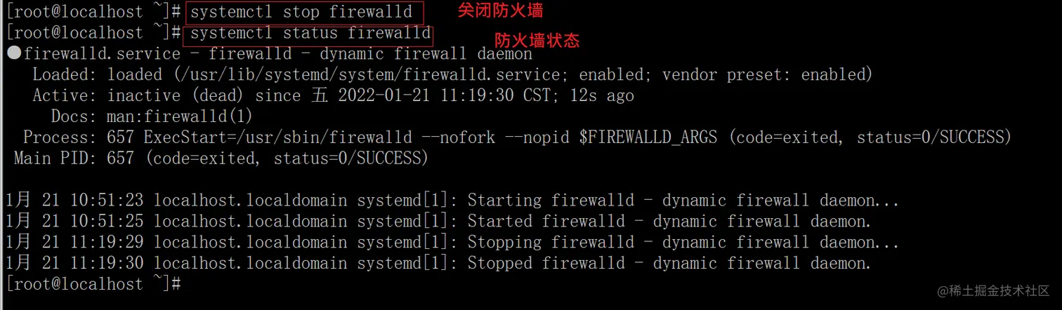 # 10.关闭防火墙服务systemctl stop firewalld systemctl disable firewalld Removed symlink /etc/systemd/system/multi-user.target.wants/firewalld.service. Removed symlink /etc/systemd/system/dbus-org.fedoraproject.FirewallD1.service.